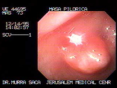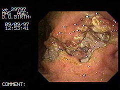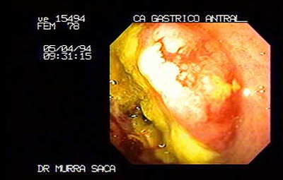 Imagen endoscópica de un Garcinoma del Antro Gástrico.