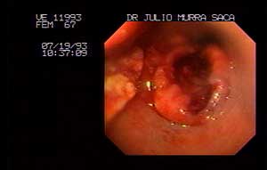 Carcinoma escamo celular del tercio inferior, paciente de 69 años quien había presentado disfagia progresiva.